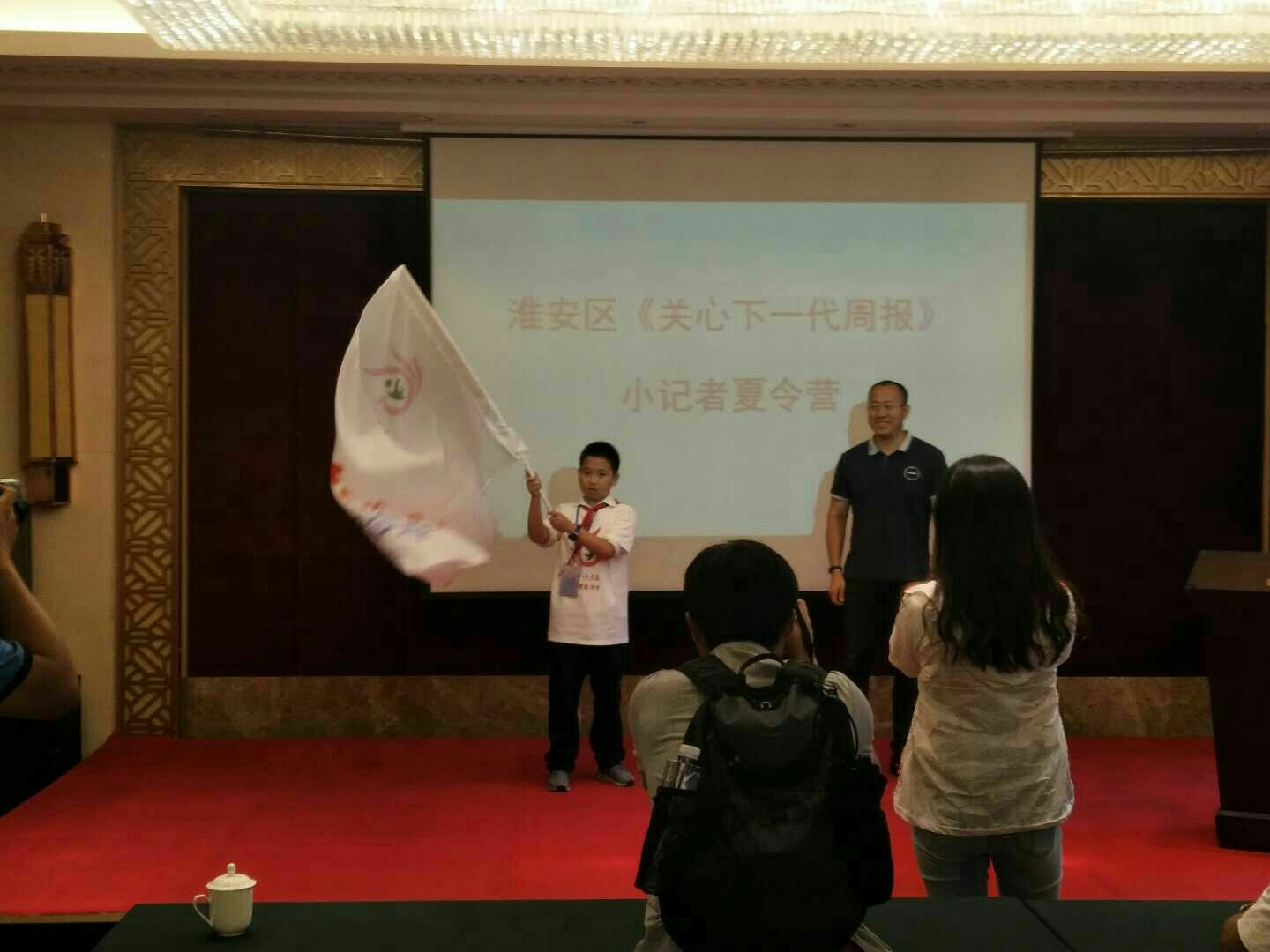 小记者们首先来到了《关心下一代周报》社,受到了周报社毛占海社长和记者们的热情接待。毛社长亲自给本次夏令营授旗,并给新增小记者们颁发小记者证。周报社还给每位小记者准备了一件营服和一本精美的小记者本。