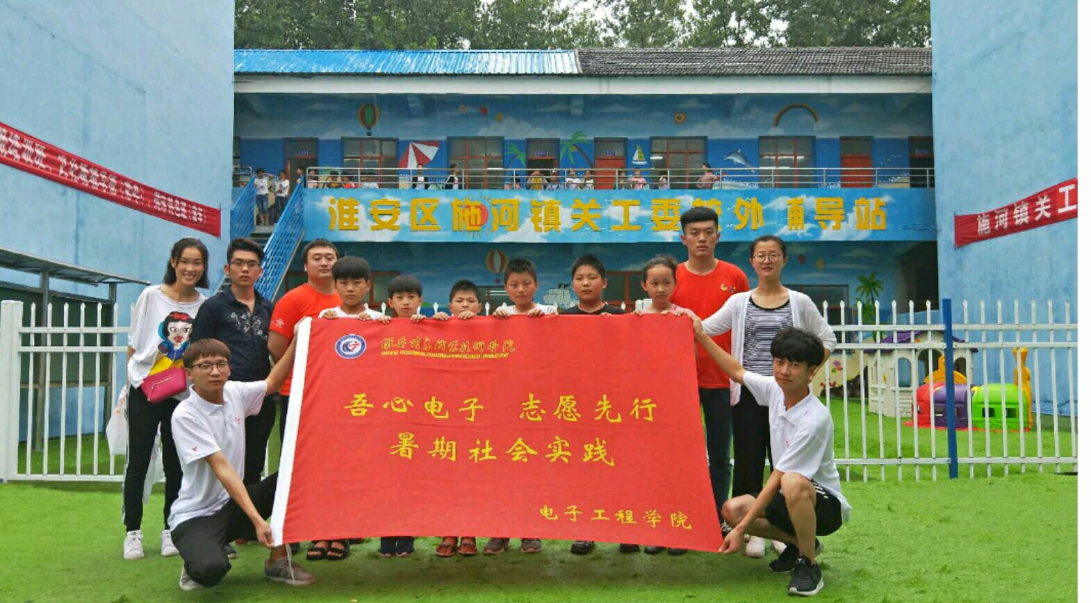 泾口镇团委联合泾口镇关工委,携手淮安信息技术学院的学生在泾口镇蒋桥居举办“小青淮”公益夏令营。10余名信息学院的学生为蒋桥居校外辅导站的孩子们带来了丰富的课程。