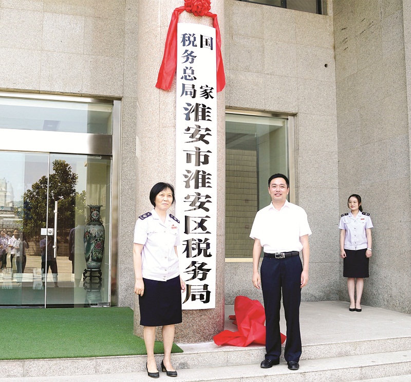 7月20日上午,国家税务总局淮安市淮安区税务局挂牌成立,原淮安市淮安区国家税务局、淮安市淮安地方税务局正式合并。国家税务总局淮安市税务局联合党委委员、副局长符晓露,区委副书记、常务副区长颜复出席挂牌仪式。(严曼曼 张 成)