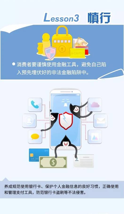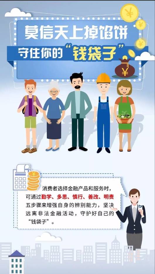近年来,老百姓“钱袋子”被戳破的事情屡屡出现,这些事件主要集中在非法金融广告、非法集资、电信诈骗、银行卡盗刷以及校园不良网络借贷等。本次活动中,专门总结面对常见非法金融活动的五步应对方法,来帮助金融消费者增强自身的辨别能力,坚决远离非法金融活动,守护好自己的“钱袋子”。